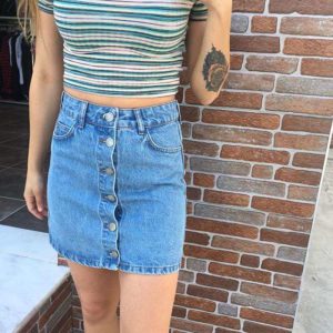 Önü Düğmeli Jean Etek
