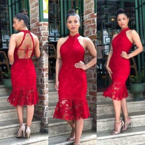Sırt Dekolteli Omzu Açık Kırmızı Elbise