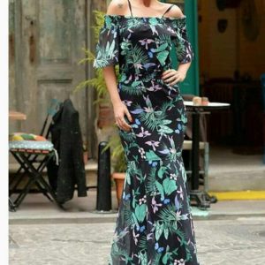 Madonna Yaka Çiçekli Şifon Elbise