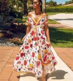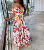 Ana Sayfa Kadın Elbise Düğün Elbiseleri Omzu Açık Çiçek Desenli Elbise