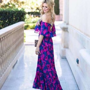 Madonna Yaka Çiçekli Elbise