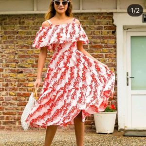 Madonna Yaka Askılı Fırfırlı Elbise